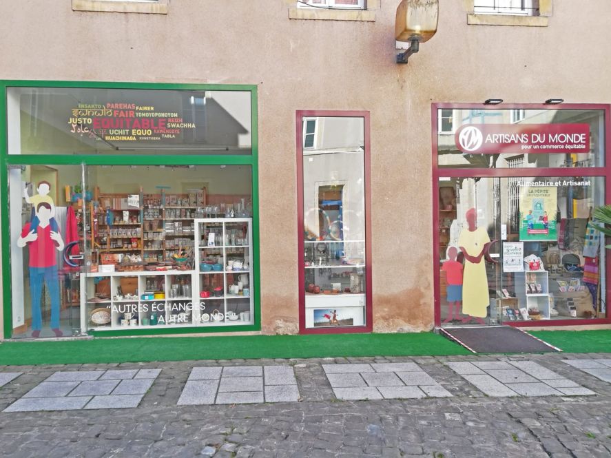 - une boutique associative située dans l'hypercentre de Metz et qui propose à la vente des produits artisanaux originaires d'Amérique latine, d'Asie, d'Afrique et du Proche Orient, et des produits alimentaires de ces mêmes régions, mais aussi issus de producteurs locaux.