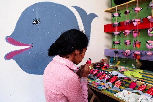 Créée en 2009, l’association l’Envers du Monde intervient depuis 2009 à Madagascar et depuis 2010 au Burkina Faso. L’association a impulsé à Antananarivo et en zone non lotie de Ouagadougou deux ateliers de production artisanale en vue de favoriser l’autonomie et l’insertion socio professionnelle de femmes en situation de très grande pauvreté exclues de tout processus classique d’insertion. Les femmes les plus pauvres sont formées, suivies et soutenues par les associations locales impulsées par l’Envers du Monde. Elles réalisent des produits originaux selon les modèles créés par l’Envers du Monde, principalement à base de matériaux recyclés, ce qui leur permet de développer un savoir-faire, de retrouver confiance, d’augmenter leurs maigres revenus, de bénéficier d’un suivi social puis de développer un projet professionnel à plus long terme. L’Envers du Monde finance des investissements (construction de l’atelier au Burkina Faso, électrification solaire et équipement) apporte son appui pour la création des modèles d’objets, la structuration des associations locales partenaires (formation, gestion, organisation, développement des outils de suivi social…) mais aussi pour la promotion et la commercialisation des produits localement et en Europe.